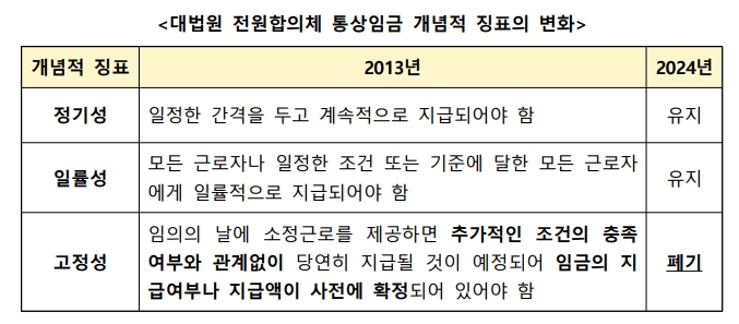 2. 고정성을 제외하고 통상임금의 개념과 판단 기준을 새롭게 정립