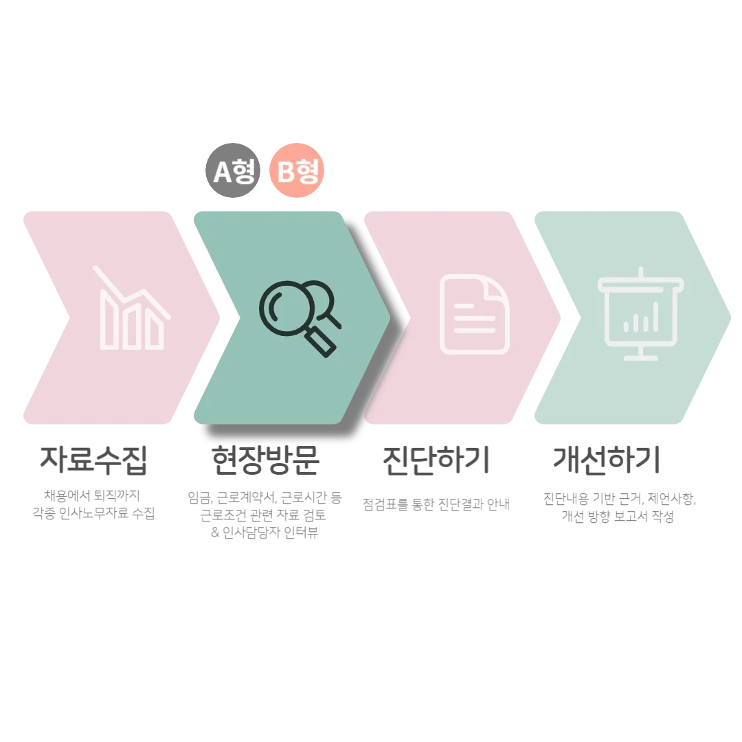 인사노무기초진단 컨설팅은 아래와 같은 절차로 이루어 집니다.