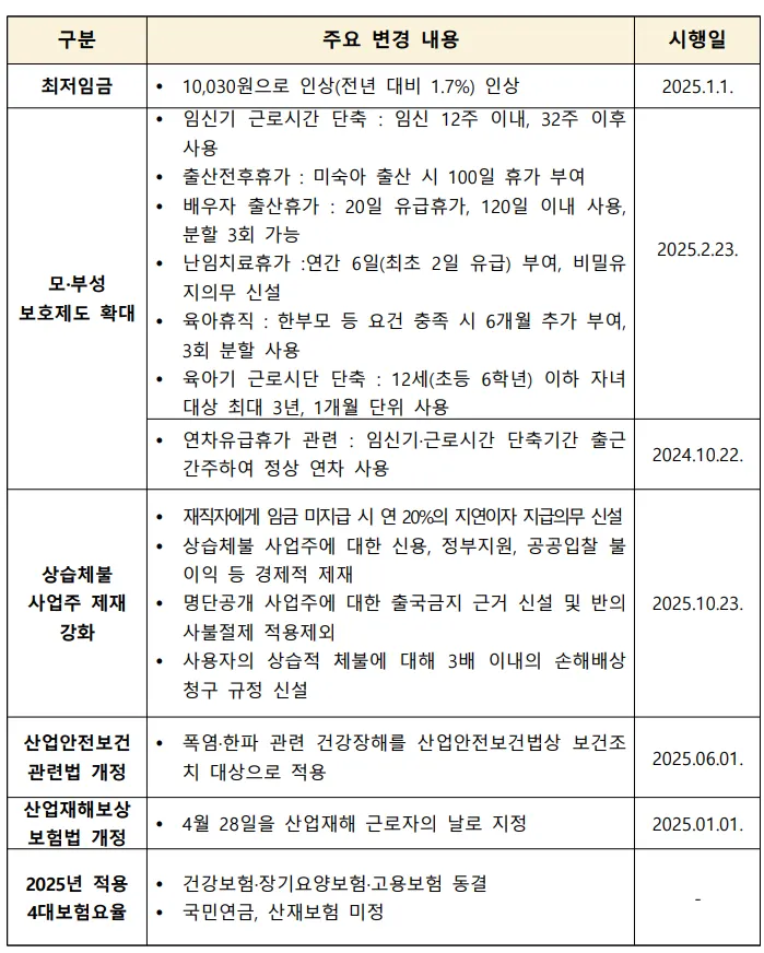 Ⅰ. 2025년 바뀌는 노동관계법령 주요 내용 요약